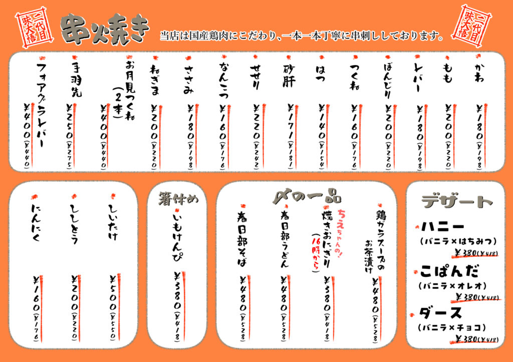 ・店長自慢の焼き鳥(オープン当初から美味しいと大評判です…!)